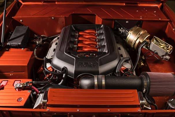 It's powered by a 5 liter Coyote engine with suicide doors, no windows or side frames and capped windows.And of course we’ll talk about the paint with the master with his custom PPG color called “Go Man Go”.
