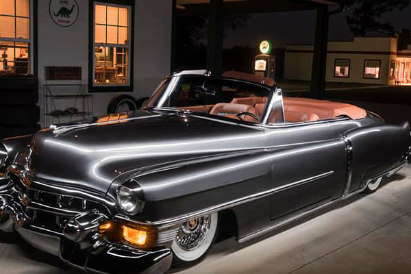 It’s one incredible, gorgeous restored 1953 Cadillac in, without a doubt, one of THE most unusual colors we’ve ever seen come out of his shop!